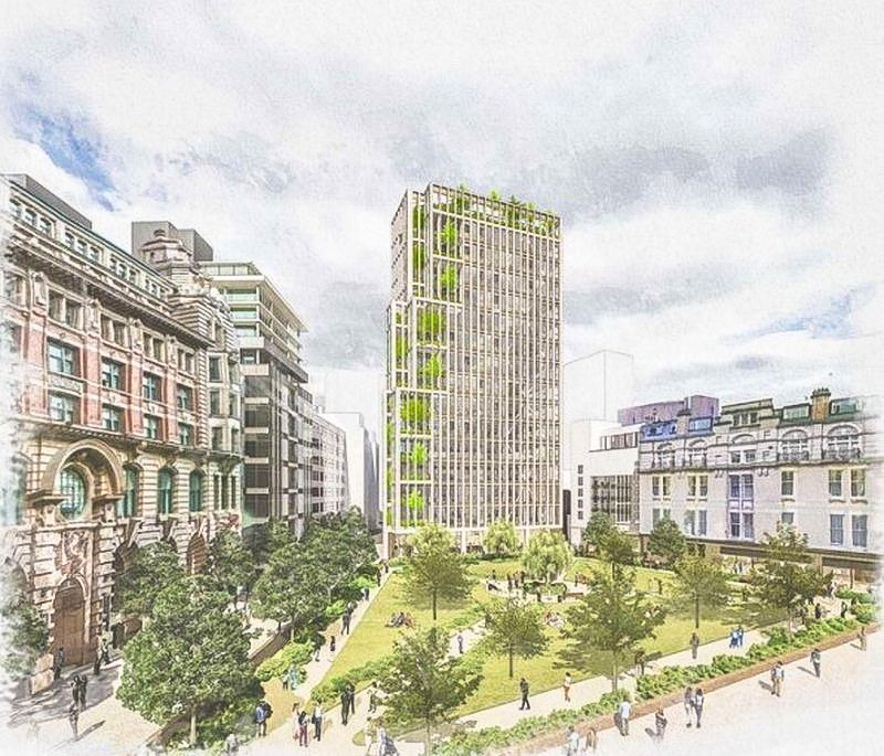 Proposals have been drawn up by Beaconsfield Commercial, a company that already owns two of the existing buildings surrounding the gardens, and they’re set to include a new 14-story new-build office block with 83,000 sq ft of space and a restaurant on the ground floor – overlooking the gardens.