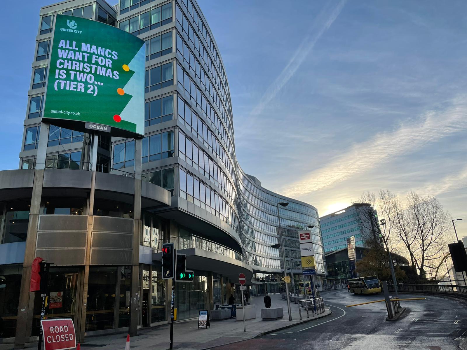 The festive-themed billboards have been spotted across the city centre, in fact, I saw the one towering over Piccadilly Gardens this morning and it stopped me in my tracks.