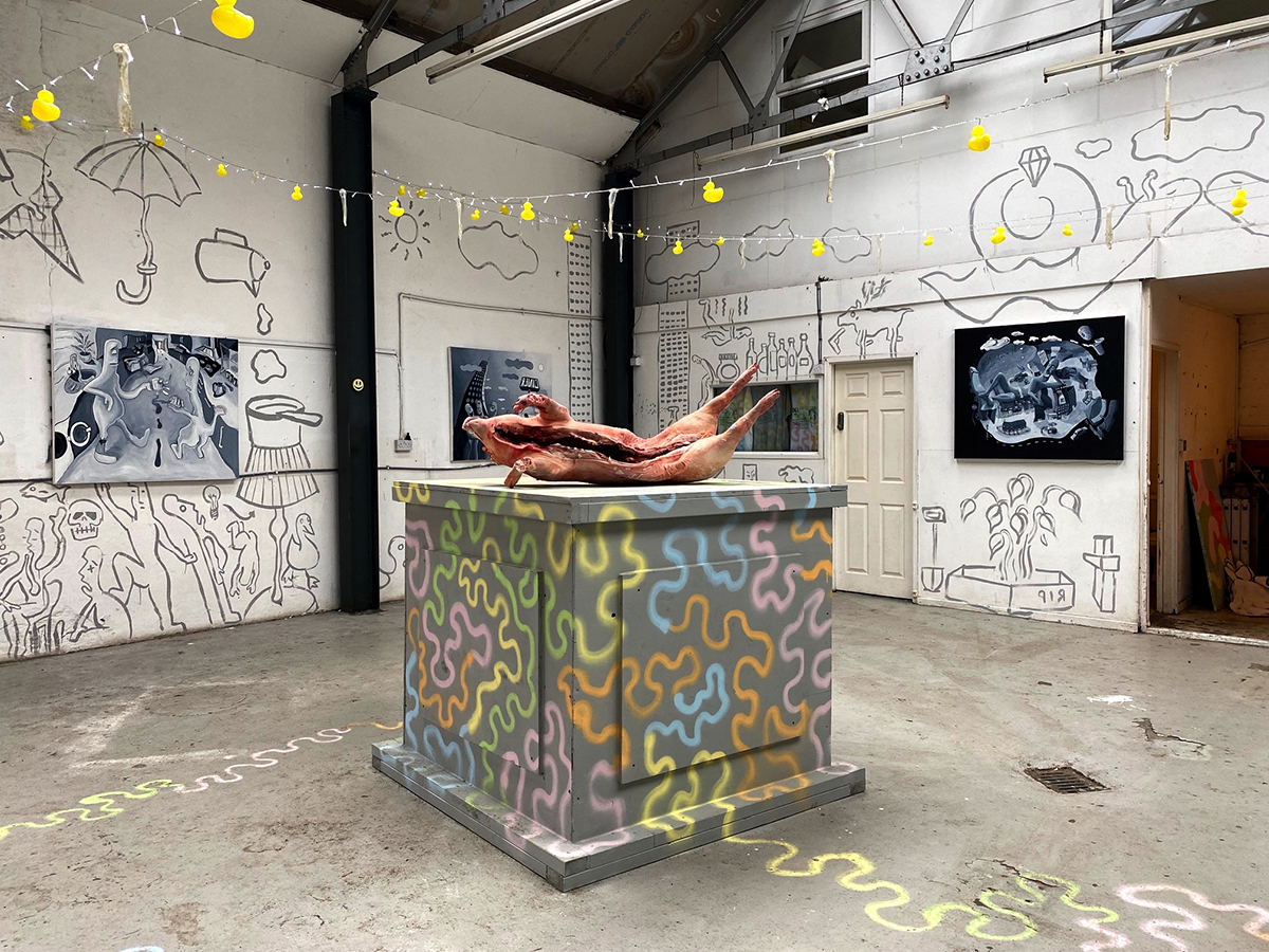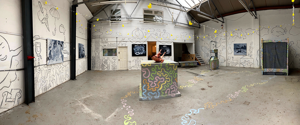 Now I have to admit that Danny’s first show passed me by. It was well attended and works were sold. But (judging by the photographs), it was more of an all-encompassing start of lockdown event rather than ‘paintings on a white wall in a bright clean space.’