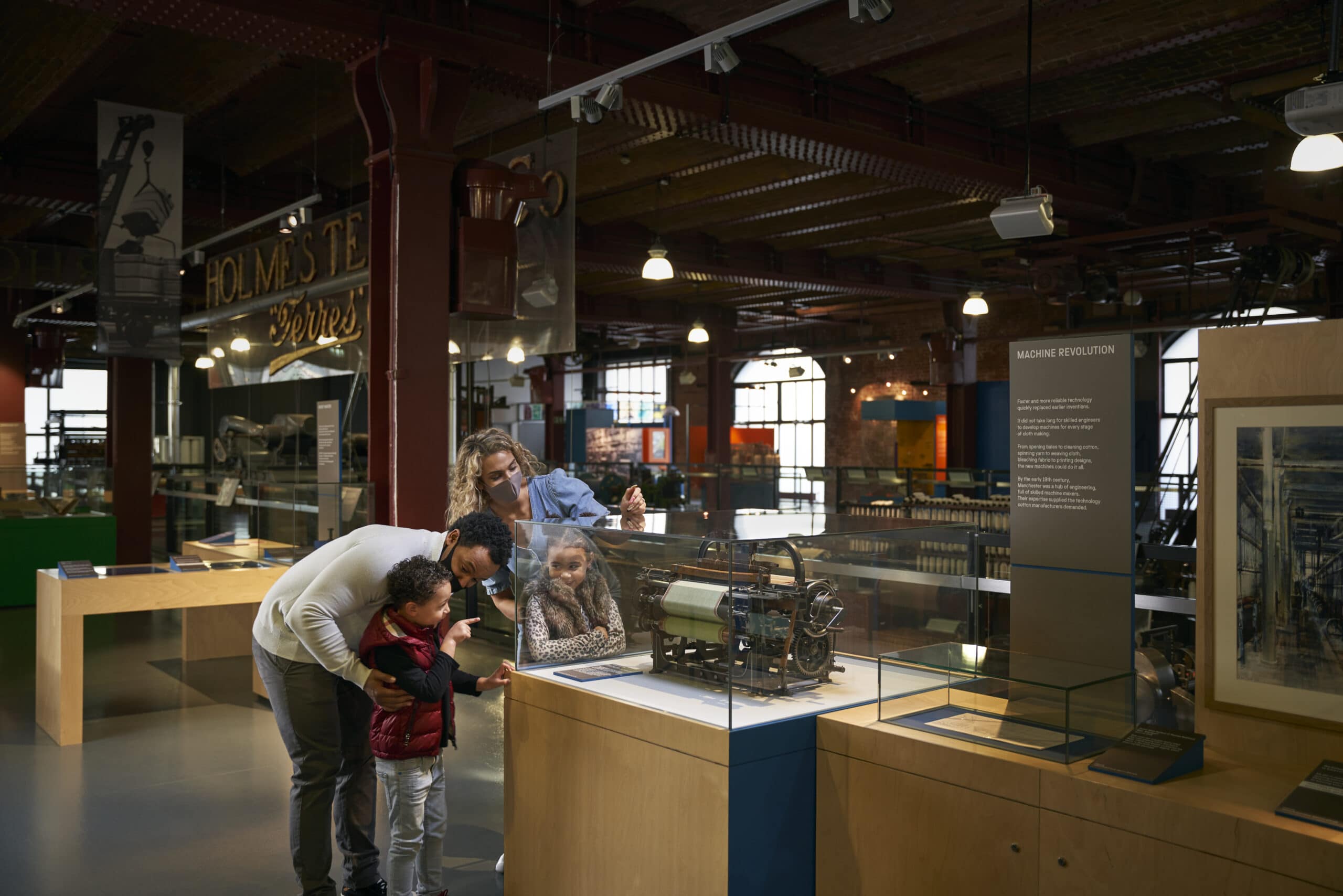 A family look at a glass display case, shot on location at the Science & Industry Museum, Manchester, October 2020
