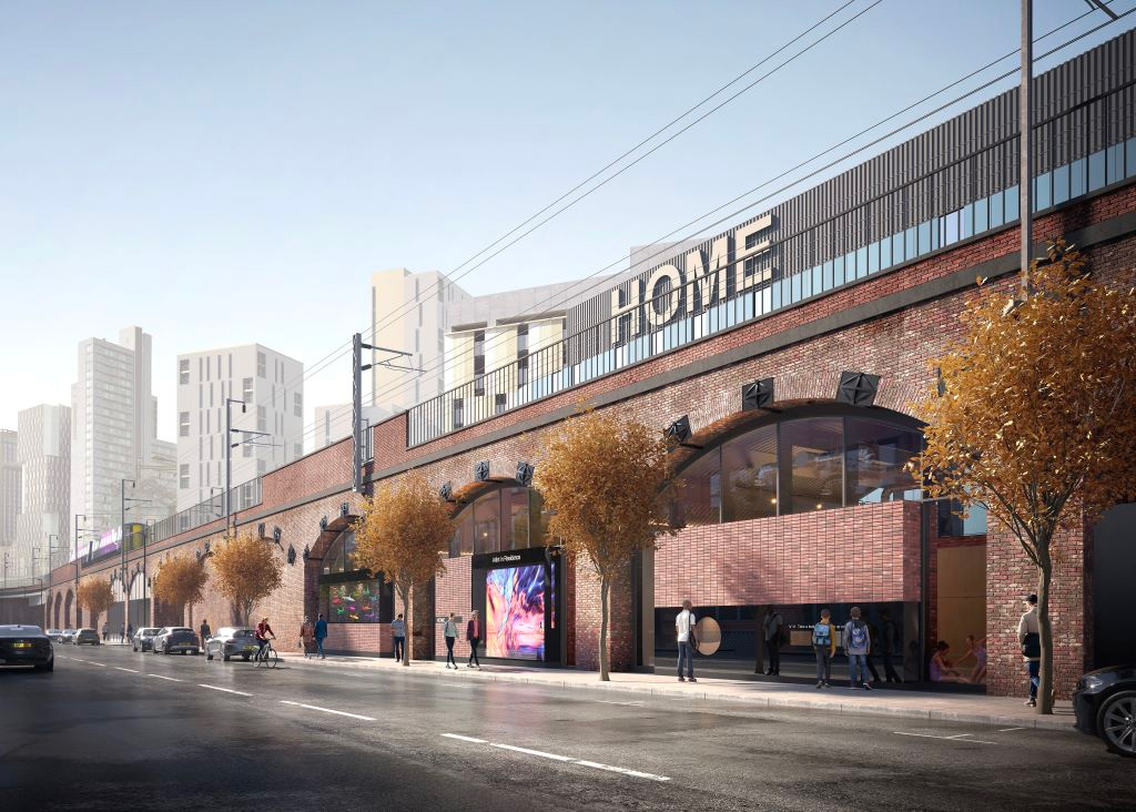 The railway arches between the main HOME arts centre building at Tony Wilson Place and Whitworth Street West are set to be repurposed as a £3.7 million artistic development hub, providing low-cost rehearsal studios and workshops for local artists. The HOME Arches project, spearheaded by Robertson Construction, commenced recently with completion expected in May 2024.