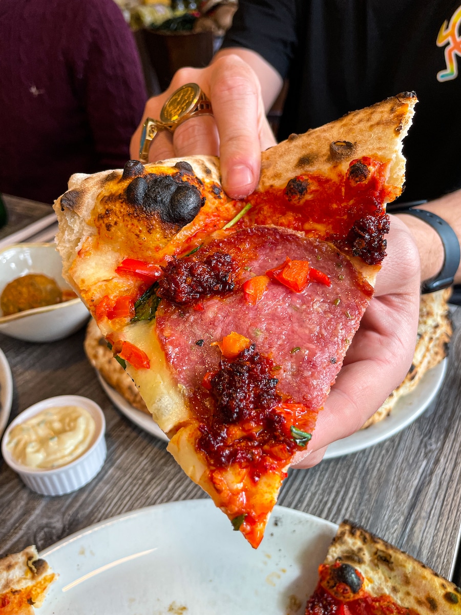 “The Mielle Sizzler is a popular choice,” The Owner says after we ask about consistent fan favourites from the menu. “That’s chorizo, hot honey, nduja, and Calabrese. Also the Mezzaluna, half calzone and half pizza with ham, mushroom and mortadella. Not many places do calzone in the UK as it’s harder to cook it the same inside and out. People have always really enjoyed it though and we get a lot of orders.