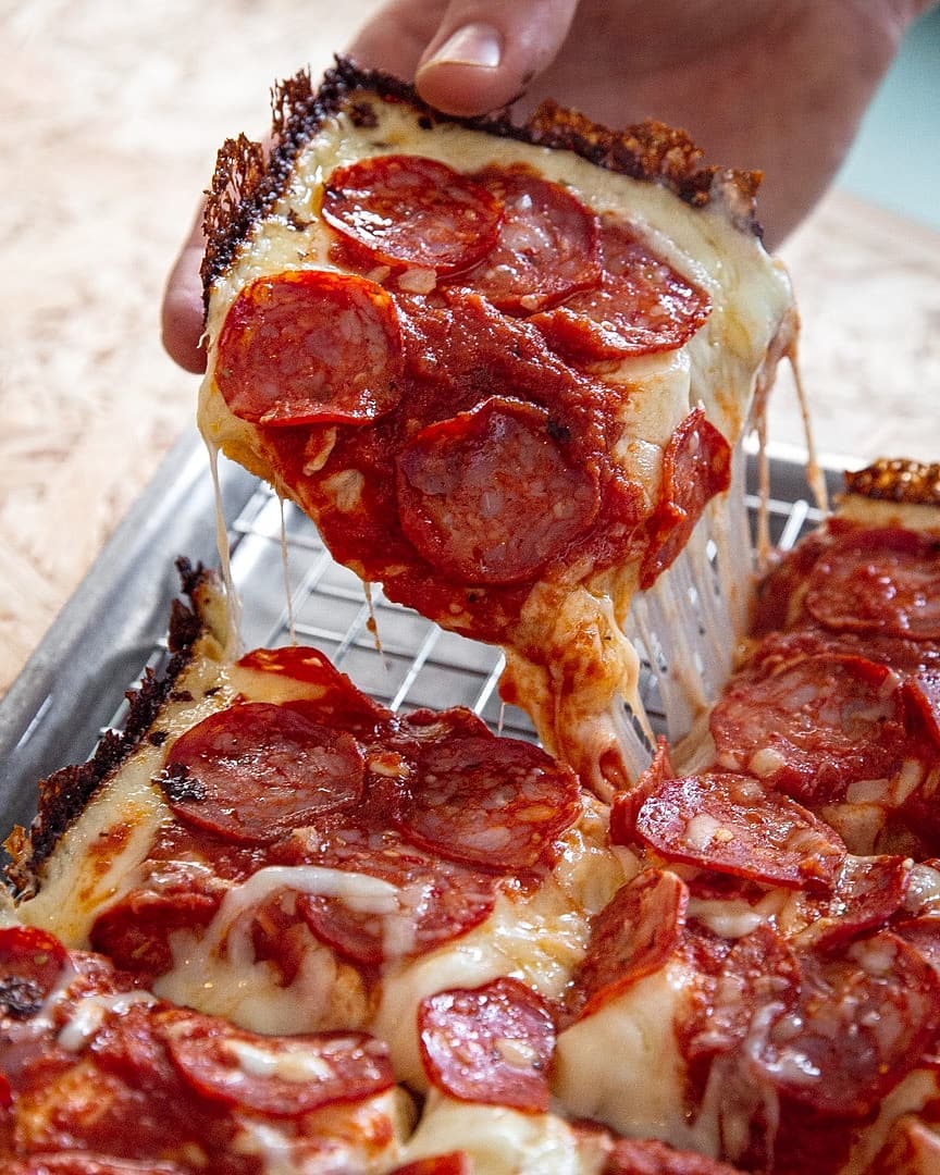 Detroit is mostly famous for cars and Motown, oh and for being pretty much bankrupt and a bit rough nowadays, but they’re also famous for their very own pizza style, imaginatively named… Detroit style.