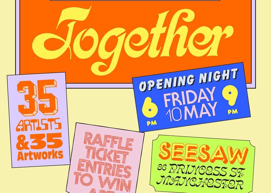 Following the success of her virtual art raffles in 2020 and 2021, artist Caroline Dowsett will host Together, a new in-person event raising money for Manchester Central Food bank. As the need for food banks continues to grow, Caroline has gathered over 30 of her fellow Manchester-based artists who have donated their work to be put on display at Seesaw in the city centre.