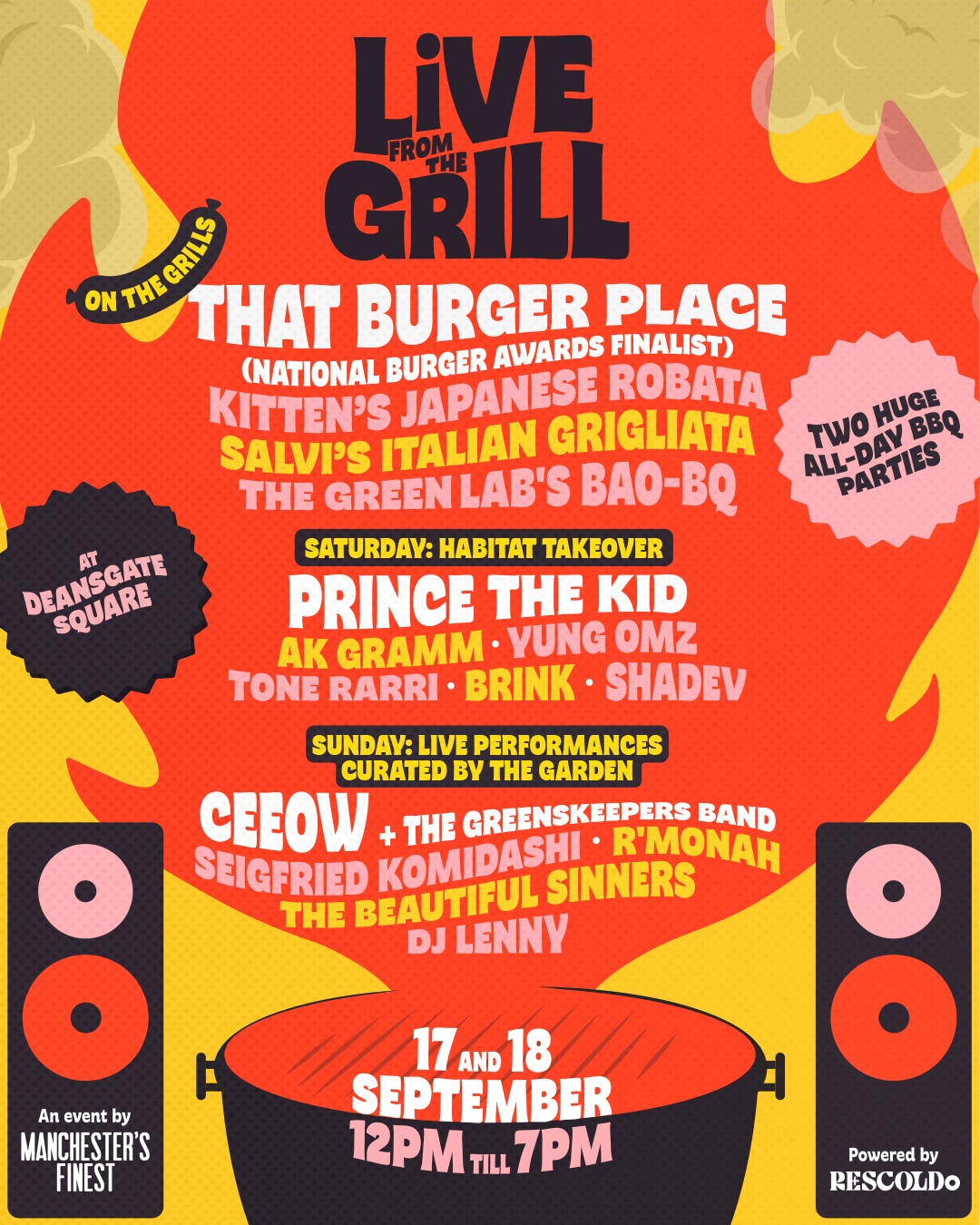 September has landed, but Manchester’s summer is far from over. ‘Live From The Grill’ is a brand new food and music party taking over a city centre square for two days of exceptional eating, cutting edge live bands and on-point DJs. Tickets are free — and it goes without saying this is far from your standard BBQ event.