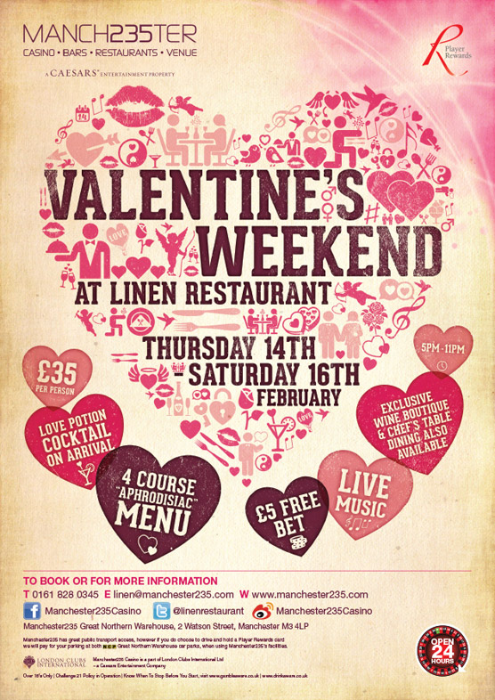 A delicious set menu is available at £45 per head and along with a glass of pink fizz includes lovers favourites such as Fresh Oysters or Seared Scallops for starters and for main course Chicken Supreme, served with Juliet Carrots and Romeo fondant potatoes, Pan Fried Calves Livers or Cupid’s Pinwheel – a unique dish of roasted seasonal vegetables and goats cheese encased in puffpastry.