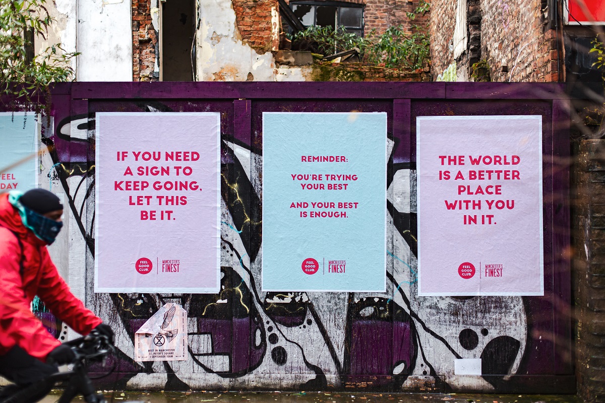 Today we’ve joined forces with Feel Good Club to spread positivity, with a set of simple, but strong and uplifting messages to let people know they’re not alone in how they feel, utilising billboard and poster spaces throughout the city, kindly provided by the team over at Jack Arts.