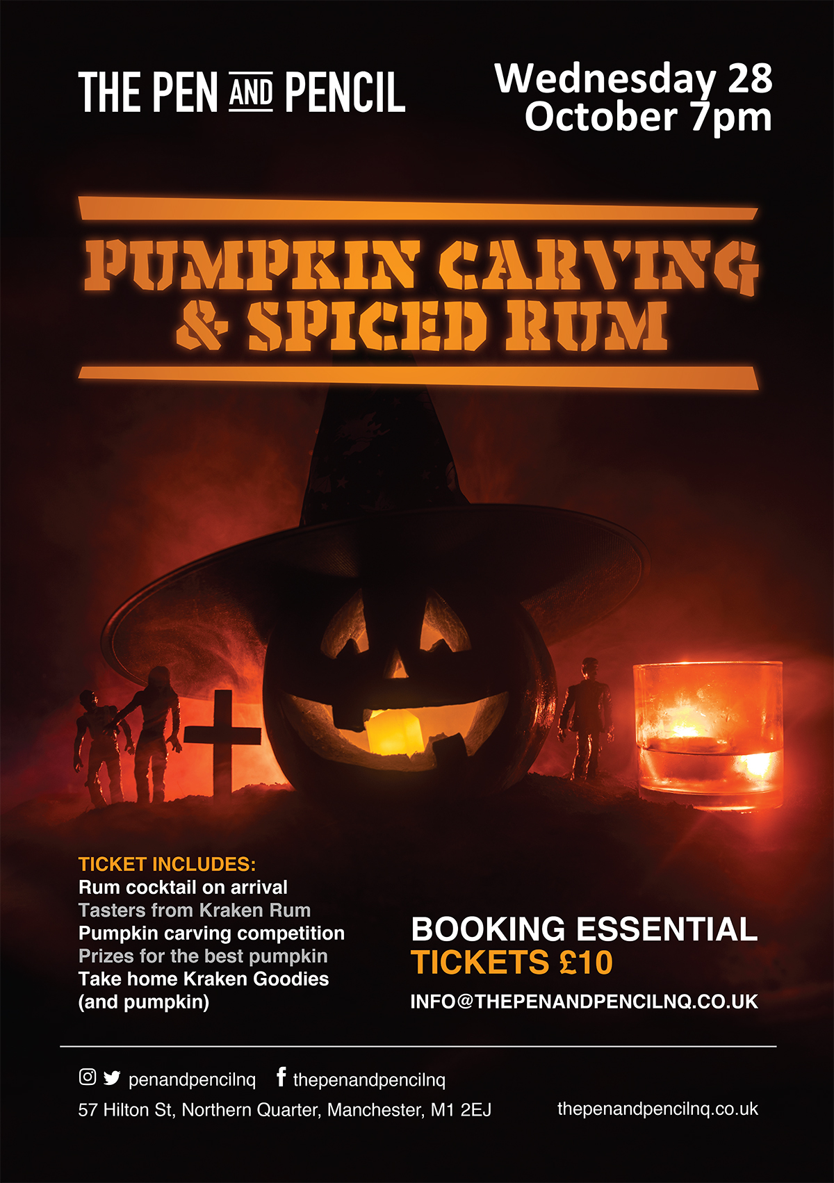 Although COVID is stopping people from trick or treating, it’s not stopping people from carving pumpkins and getting drunk whilst doing it. NQ favourite, The Pen & Pencil, have tactfully teamed up with non other than Kraken Spiced Rum to bring you an evening of… well – pumpkins and rum! Be very quick to secure your spot by emailing info@thepenandpencilnq.co.uk