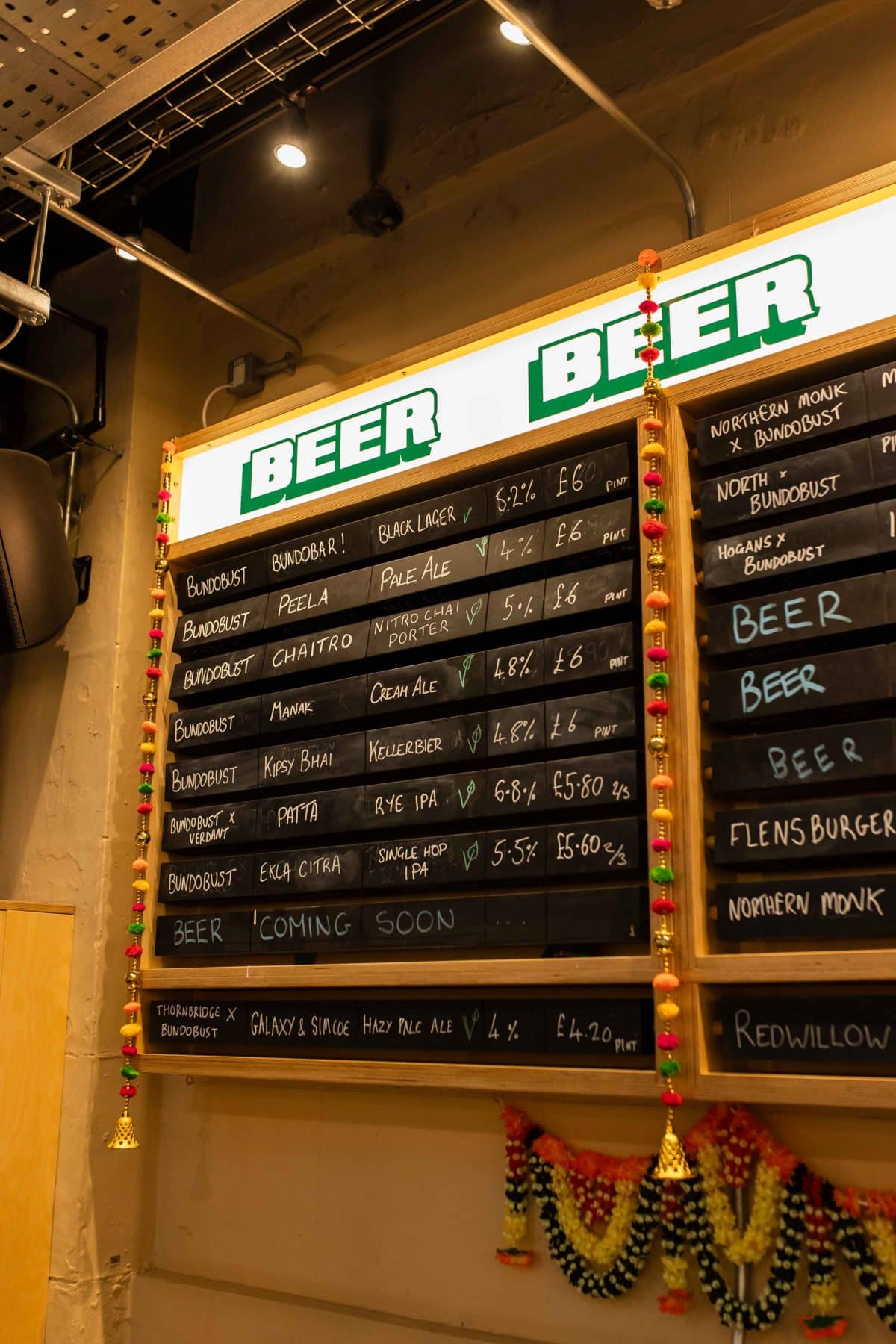 Spectacular all-vegetarian Indian street food market meets European beer hall serving exclusive hoppy goodness by the tank load.