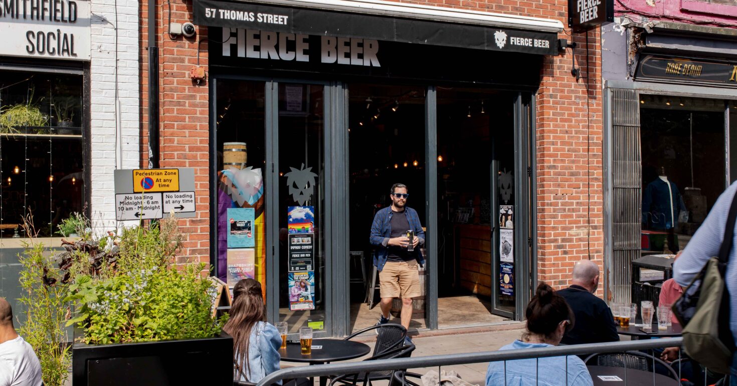 Manchester has its fair share of native breweries, but that doesn’t mean there isn’t room for visiting dignitaries like Fierce Bar. Established in Aberdeen circa 2015, within a year the craft beer specialists had expanded to the Scottish capital, Edinburgh. 12 months on, and in the midst of a global pandemic the brand set ups its first shop — or bar — in England, here in Manchester. Known for a number of great things, not least the exceptional selection of drinks and dog-friendly attitude, the company is a truly welcome addition to the thriving Thomas Street hospitality scene — one of several Northern Quarter roads that has now been sealed to traffic and pedestrianised, allowing businesses to set out tables for al fresco sessions.