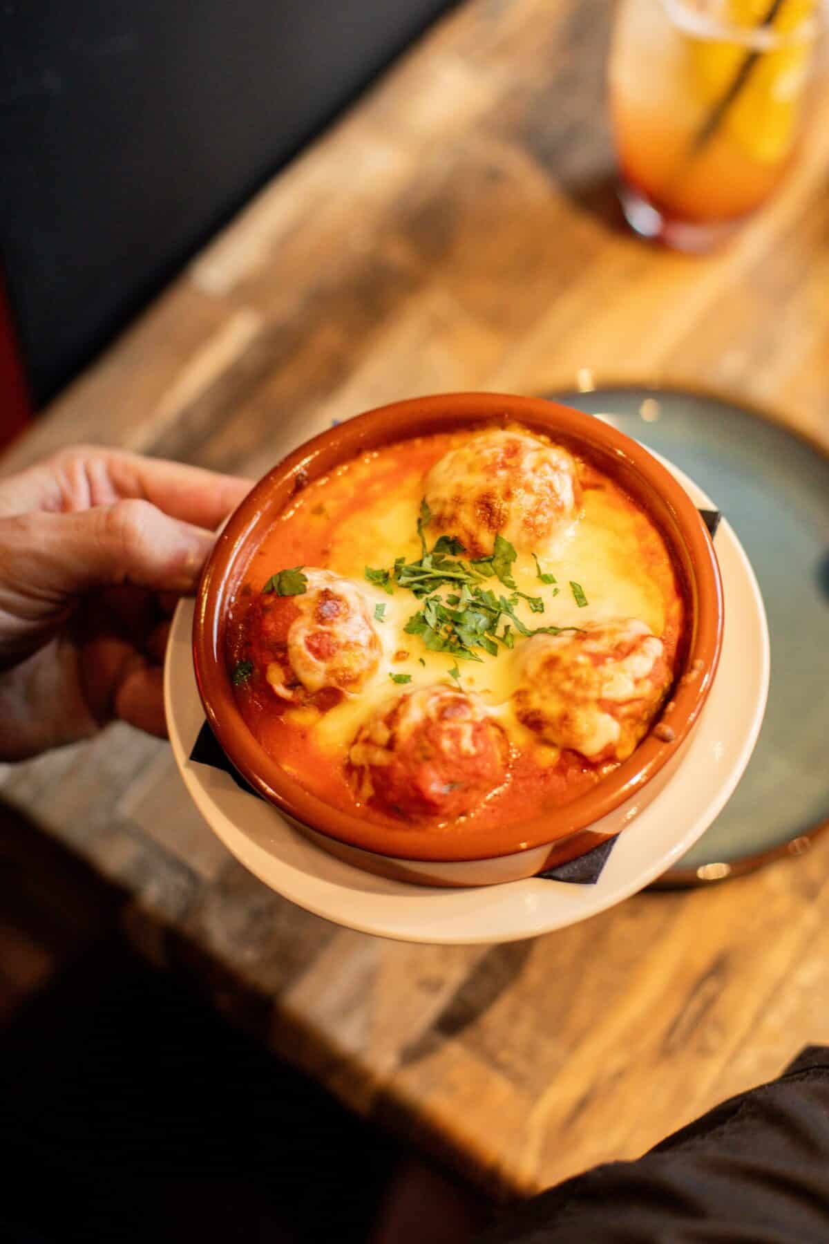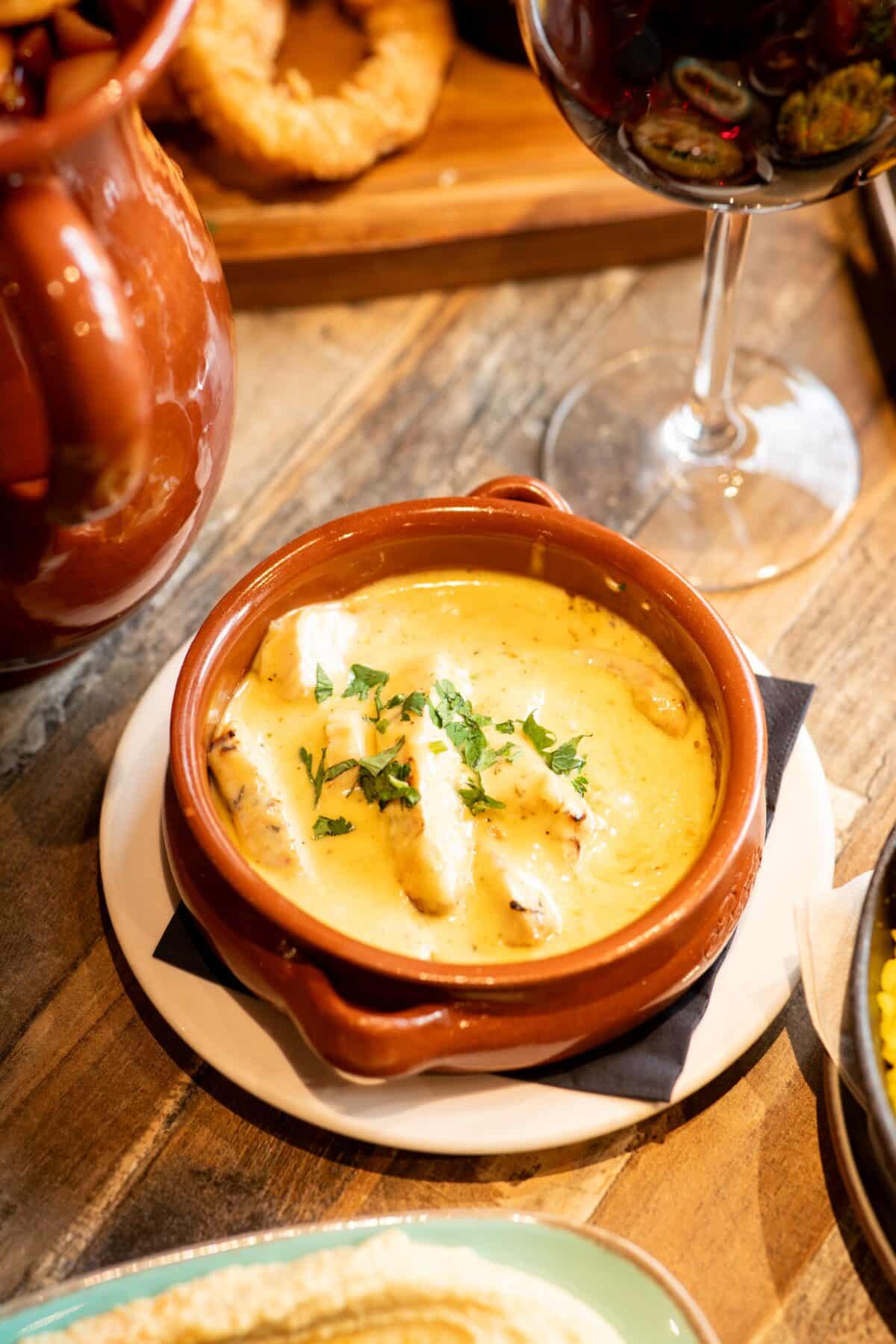 Meat eaters will be in their element, too, with pork belly in Spanish barbecue-style sauce (Pancetta de Cerdo), authentic Spanish meatballs (Albondigas), and creamy chicken (Pollo Cremoso) among the options. As you would hope, you can also opt for Las Paellas, with different variations to choose from — Mariscos (seafood, vegetables and saffron), De Pollo (chicken, chorizo and vegetables), Cordero (lamb and seasonal vegetables), and Vegetariana (vegetarian). Red, white and sparkling sangrias are a go-to-choice at the bar, although there are plenty of alternatives on the very well-curated list of Spanish wines, alongside beers and spirits.