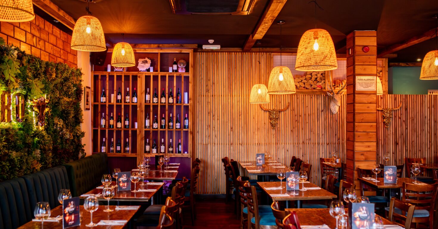 Further down the options you’ll also find classics from sirloin to fillet, and a number of less common options. For example the Garlic Leaf Steak (thinly sliced meat accompanied by pesto sauce), the Lokum (taken from the bead of the fillet), and the Cheesy Sirloin (which is as it sounds). Anyone not looking for beef will be more limited, but can punt for the Lamb & Chicken Breast mix or Lamb Cage Steak. Unless they prefer fish, with options including sea bass and salmon. Flat iron fajita sizzlers and a number of more complex dishes, including Beef Stroganoff and Chicken Teriyaki, are also available. As is a selection of burgers and vegetarian plates like Stuffed Aubergine and the Halloumi Tower, various starters and salads.