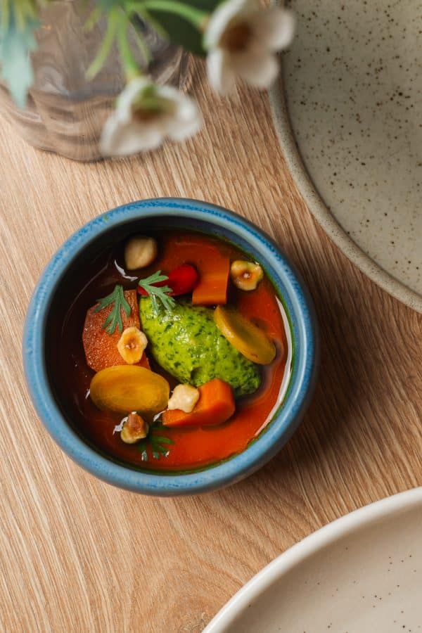 Proudly intimate, Örme focuses on creating a warm and welcoming atmosphere in which to present world class creations from the kitchen, and attention to detail is everywhere. “We preserve, ferment, and pickle our own vegetables, source sustainable seafood that isn’t overfished, and prepare whole cuts of meat throughout the menu,” Felds explains, while Roberts adds: “It’s important to us that we partner with suppliers who share our ethos and do their bit to decarbonise and improve industry sustainability.” On a mission to strip the formality out of fine dining in an ethical way, to be honest they put all this better than we ever could. “Above all, we want you to feel like you’re coming to ours for tea.”