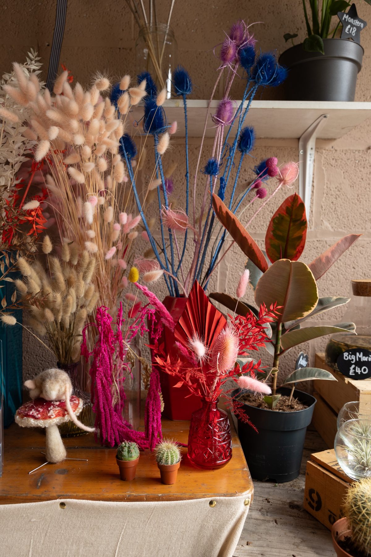 Independently run, female-owned, Sweet Bud isn’t just about good for you but also good for the planet. No wasteful or environmentally harmful materials are used anywhere, with things like non-biodegradable cellophane and floral foam are on the banned list. Having spent more than a decade in the industry, during which time she clocked up experience working for highly respected florists in Manchester and Yorkshire, this is a natural evolution for Liv, who has found the perfect home at Levenshulme’s Antique Village. A studio which truly speak to her love of floristry, but also art and design. An environment in which you can almost feel the creativity sparking.