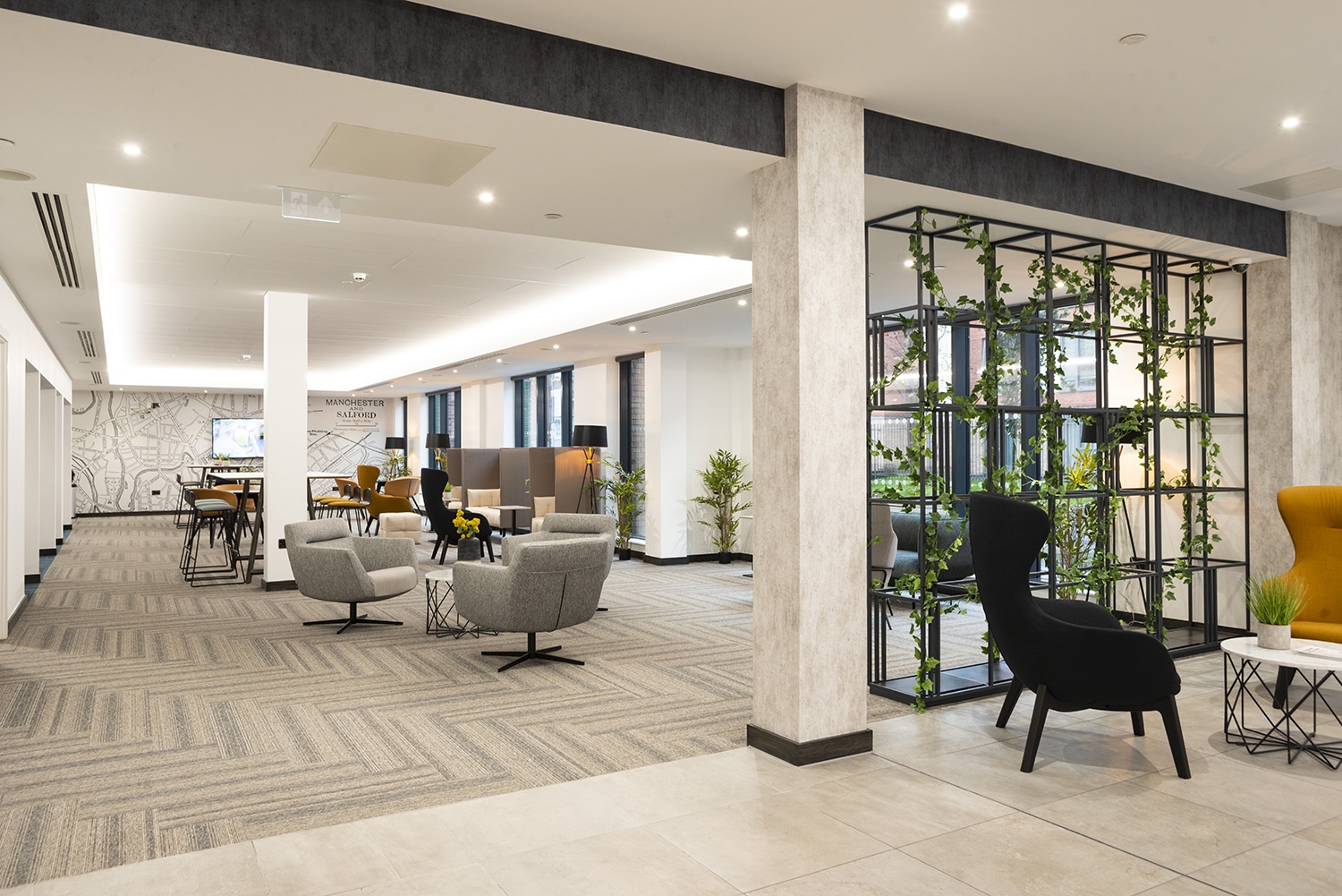 Named in reference to Salford’s former docklands, the site has opened up and given way to an expansive piazza of landscaped gardens. As well as creating the perfect balance between vibrant city life and open green spaces, the scheme echoes the area’s former glory as Botanical Gardens where fashionable Victorians would visit.