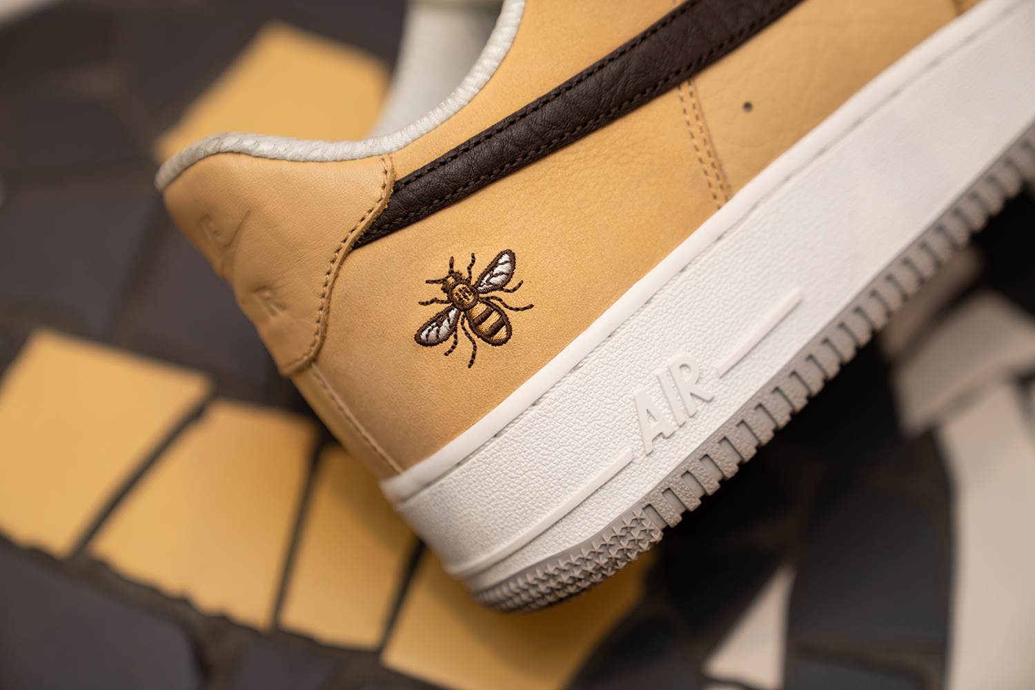 “A symbol of hard work and unity, the worker bee was one of the starting points for the Air Force 1 Manchester’s design, and we’ve sat it proudly towards the rear of the shoe in honorary fashion.”